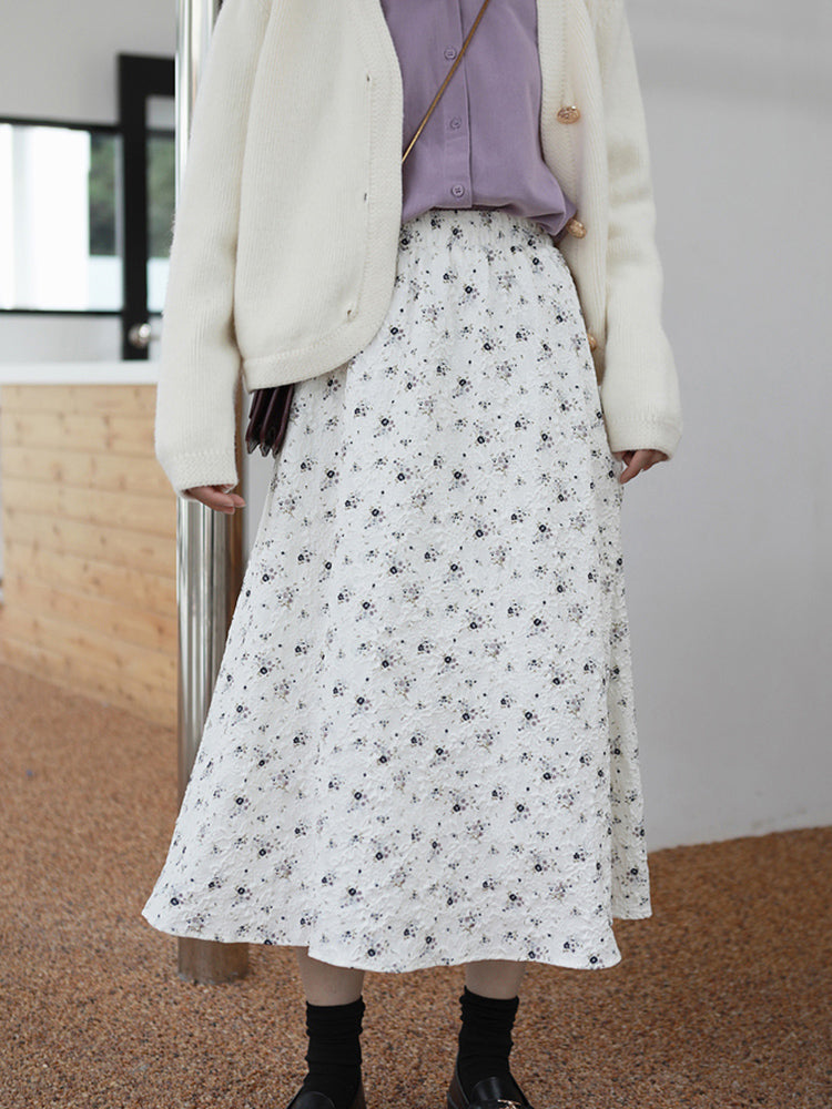 VERILADY | (在庫僅か) エンボス花柄ロングスカート Aライン