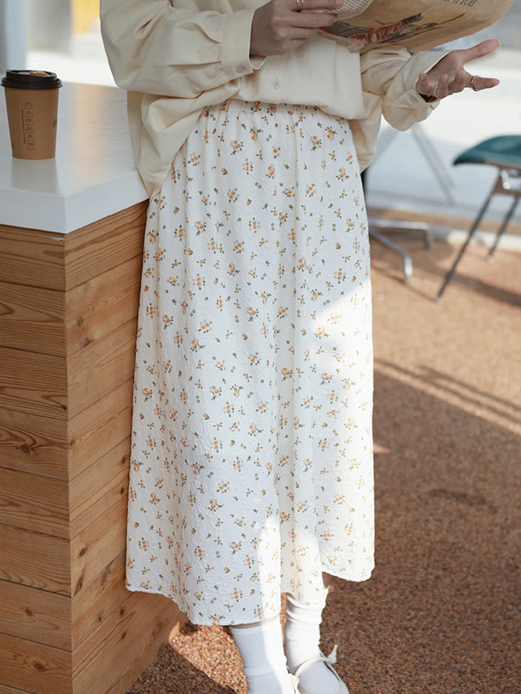 - シーズンムード漂う花柄スカート。小花柄プリントがフェミニンな印象にしてくれます。