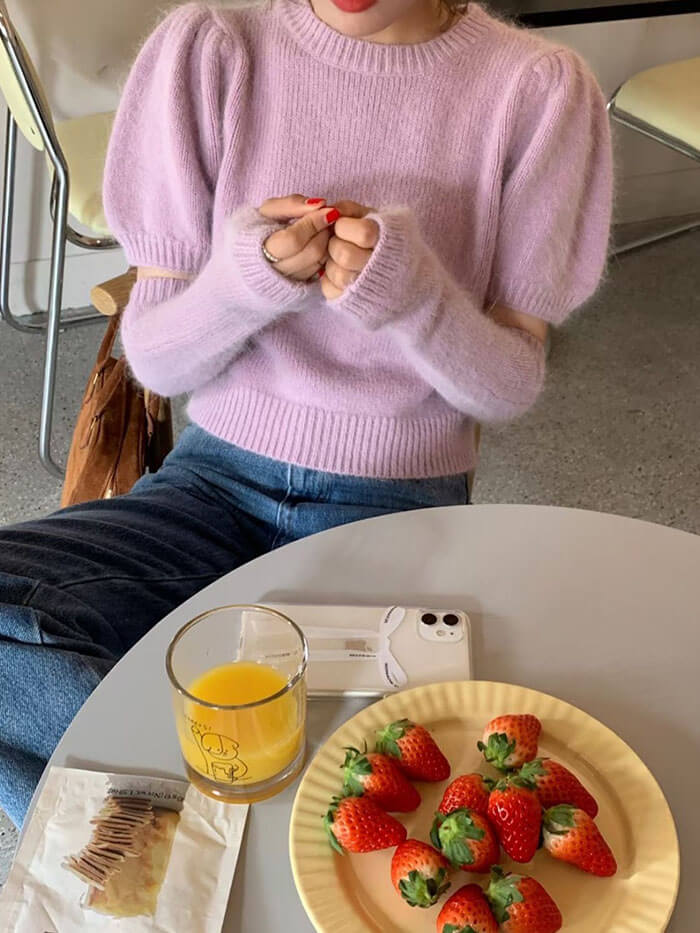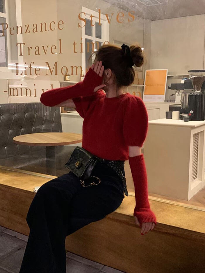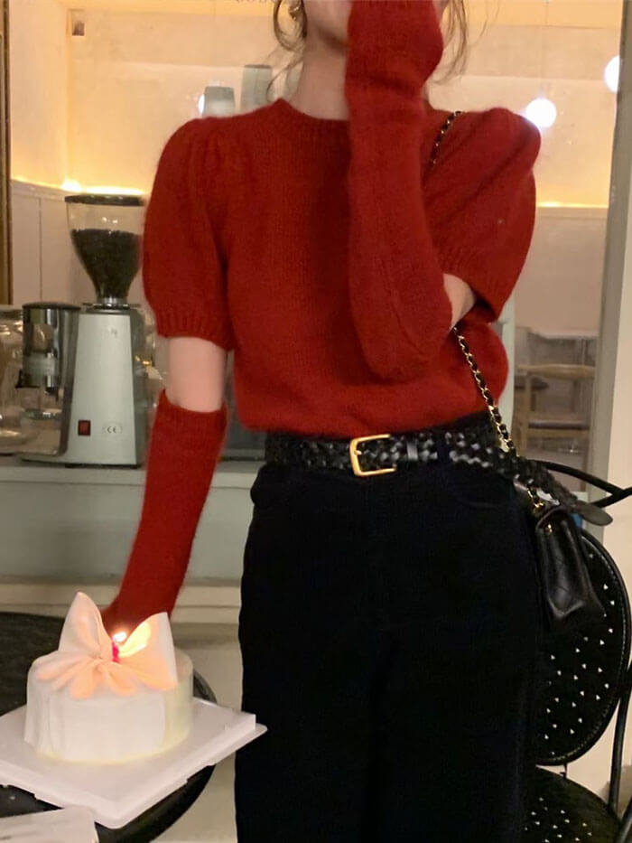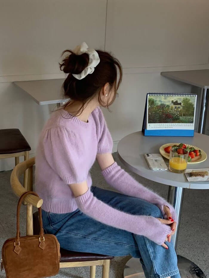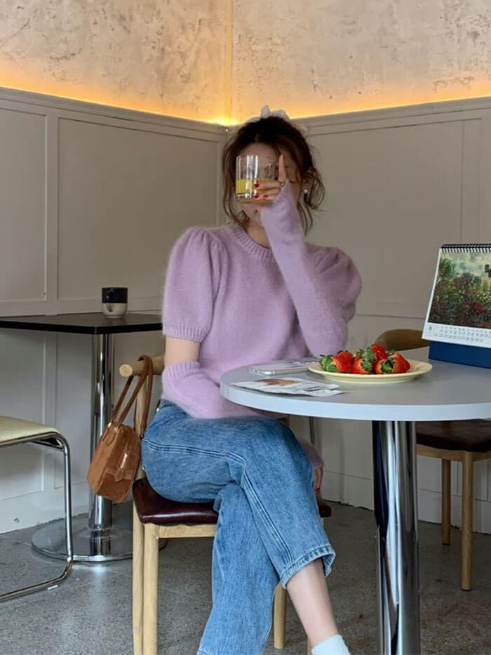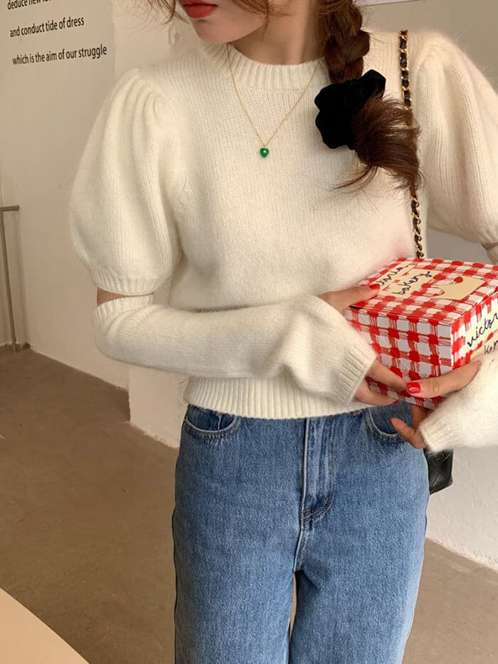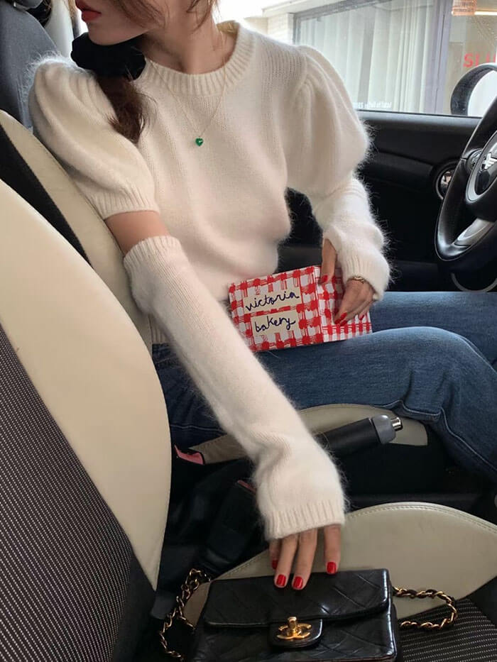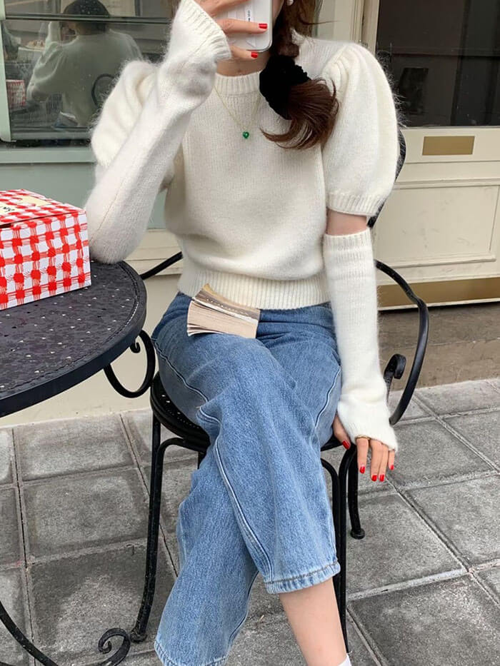 ・針織衫上有適量的泡泡袖,營造出可愛的外觀。