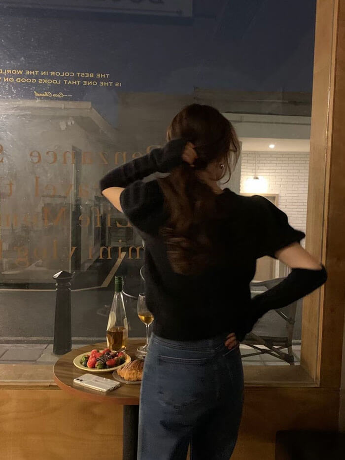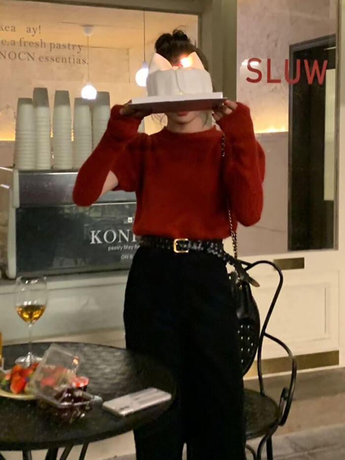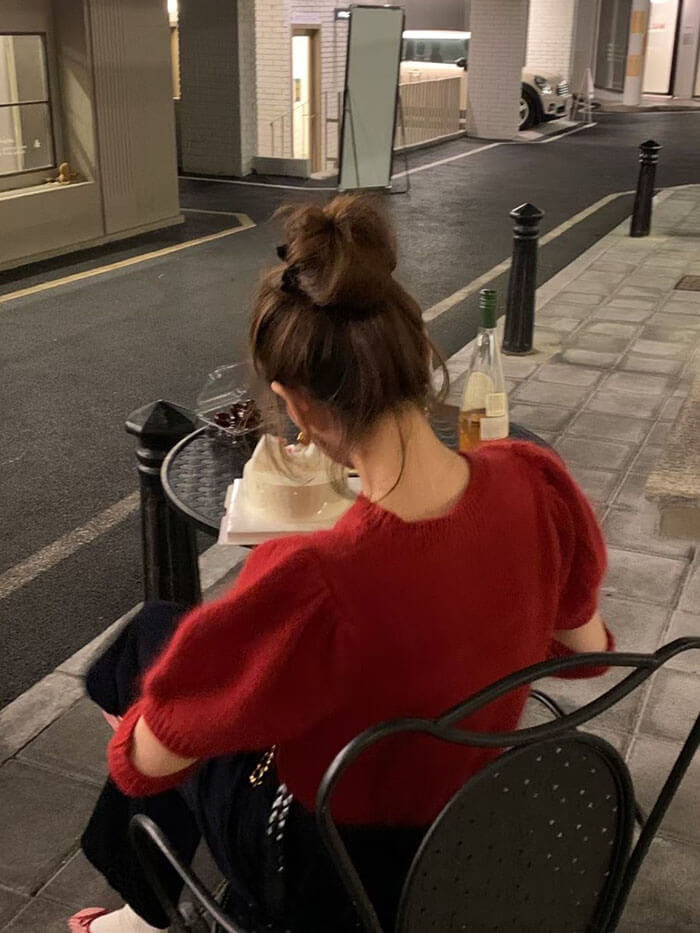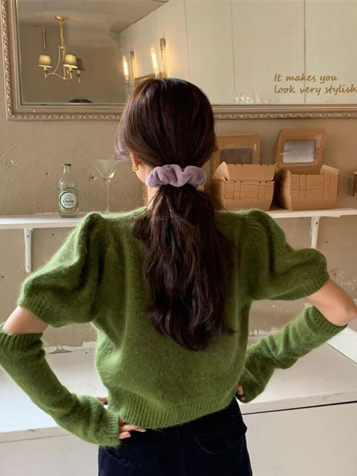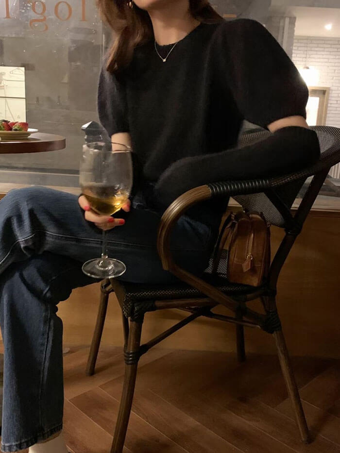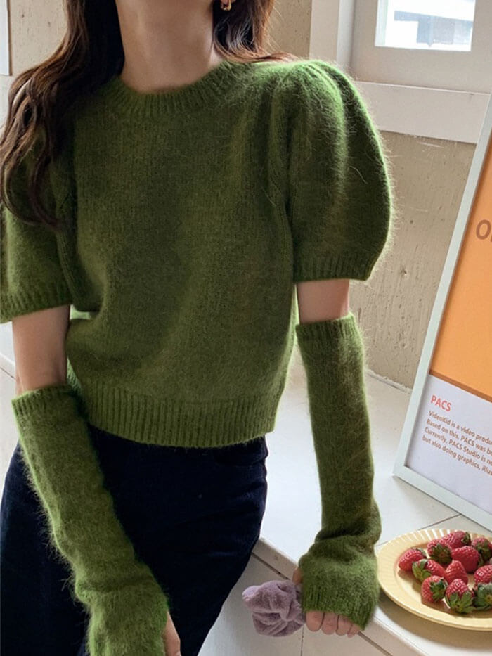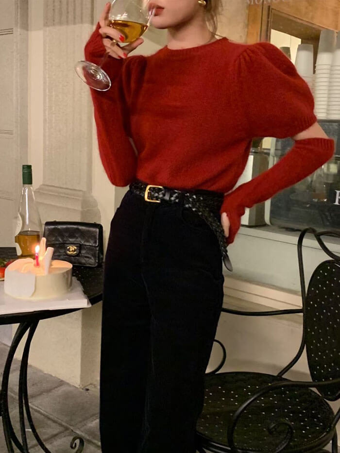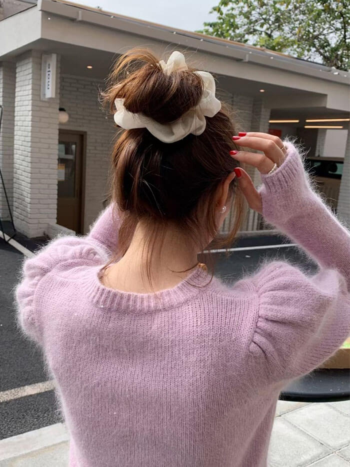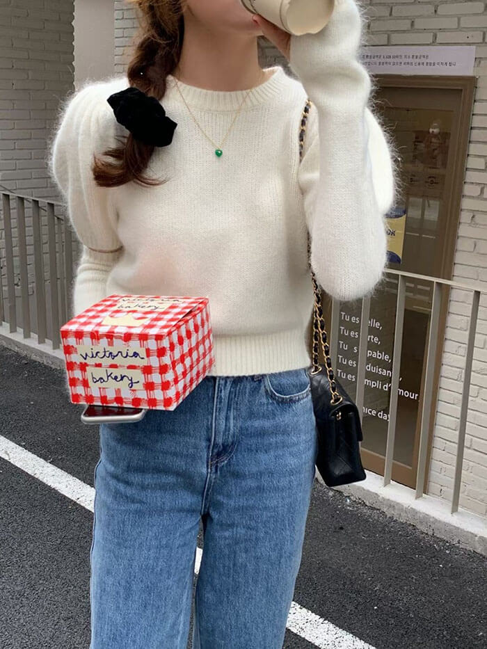 ・針織衫上有適量的泡泡袖,營造出可愛的外觀。