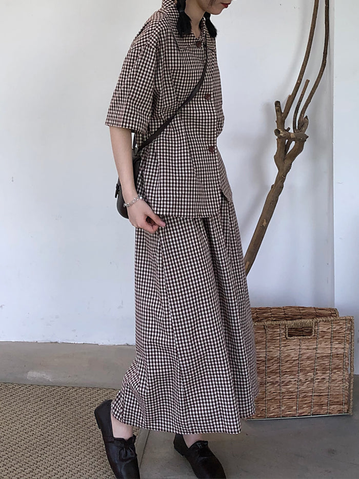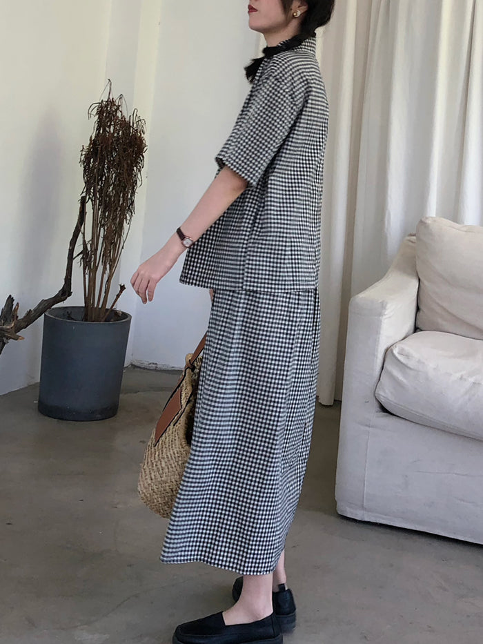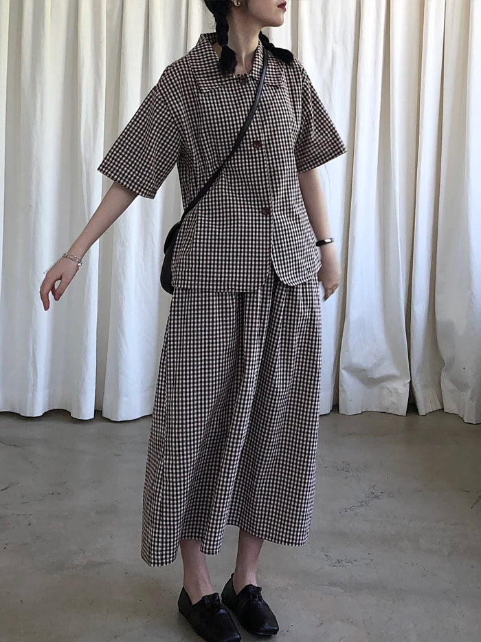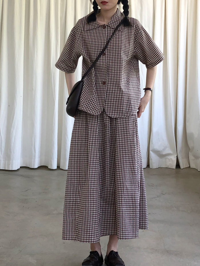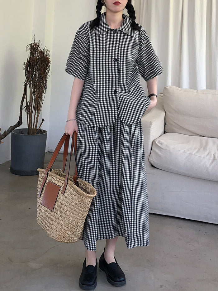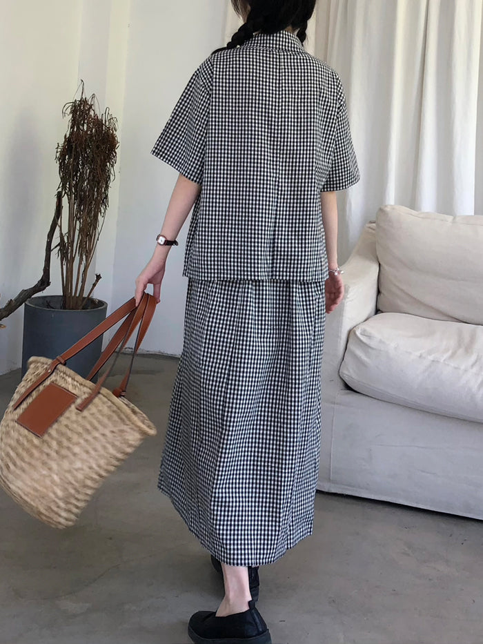 VERILADY | 格子短袖襯衫裙上下兩件套