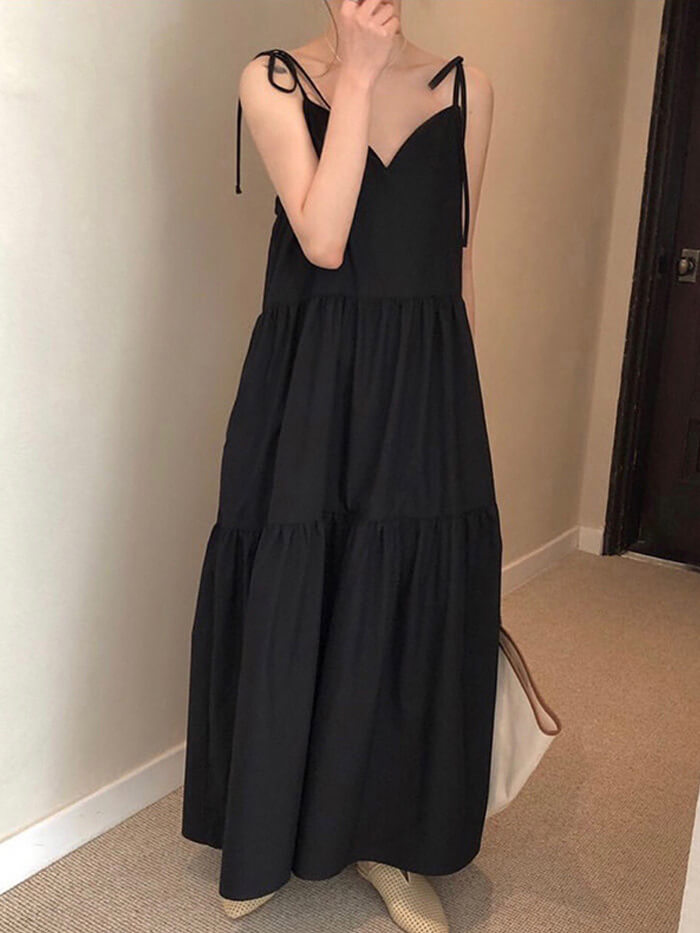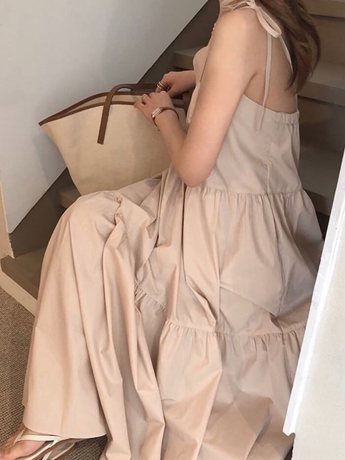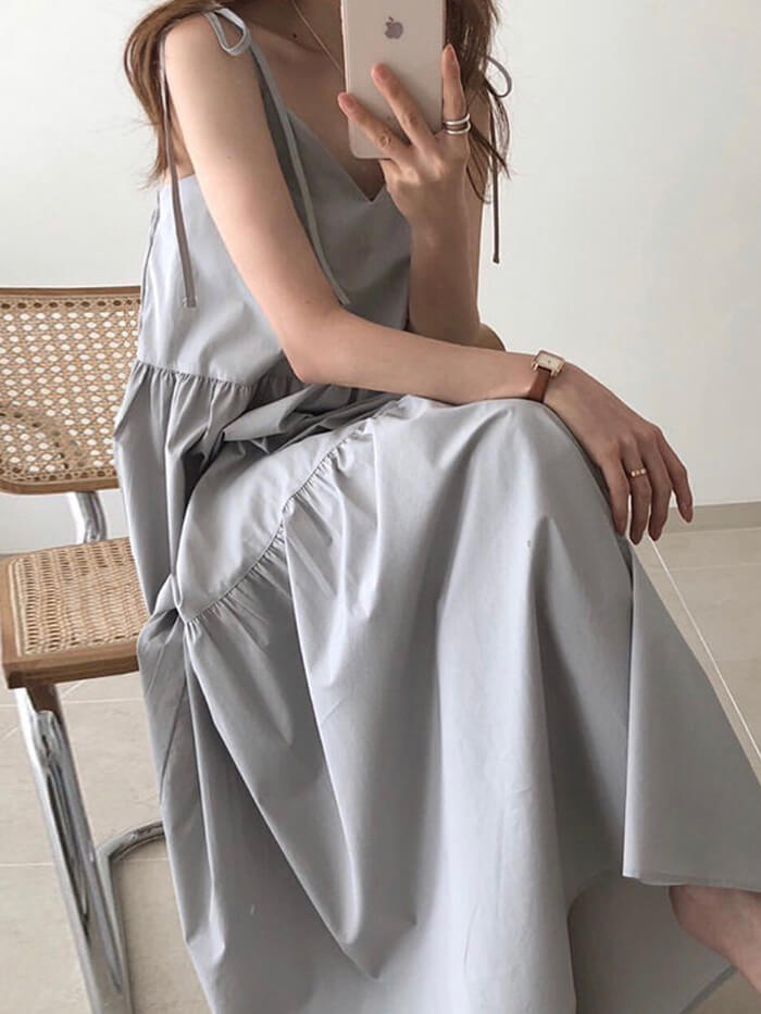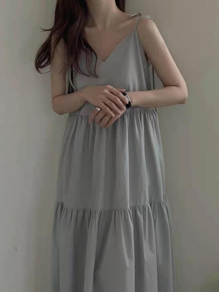 VERILADY | 絲帶肩帶疊層連衣裙
