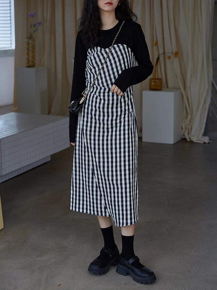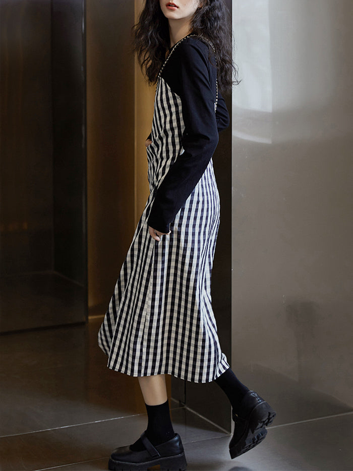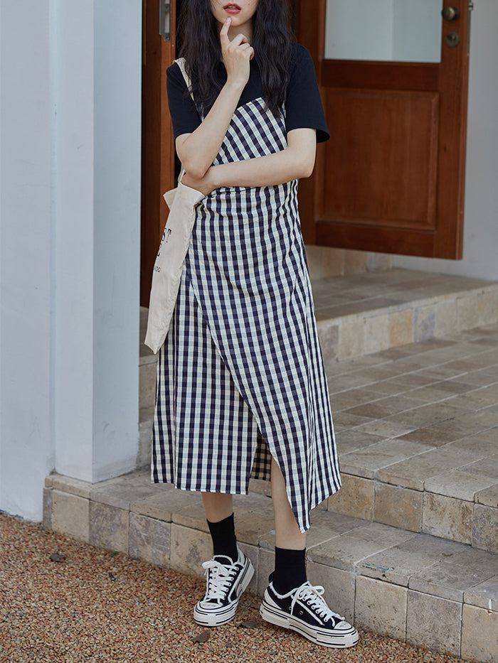 VERILADY |[預訂商品將在訂購後 7 至 10 天內發貨] T 恤和吊帶連衣裙 緊身胸衣 女孩連衣裙 格紋
